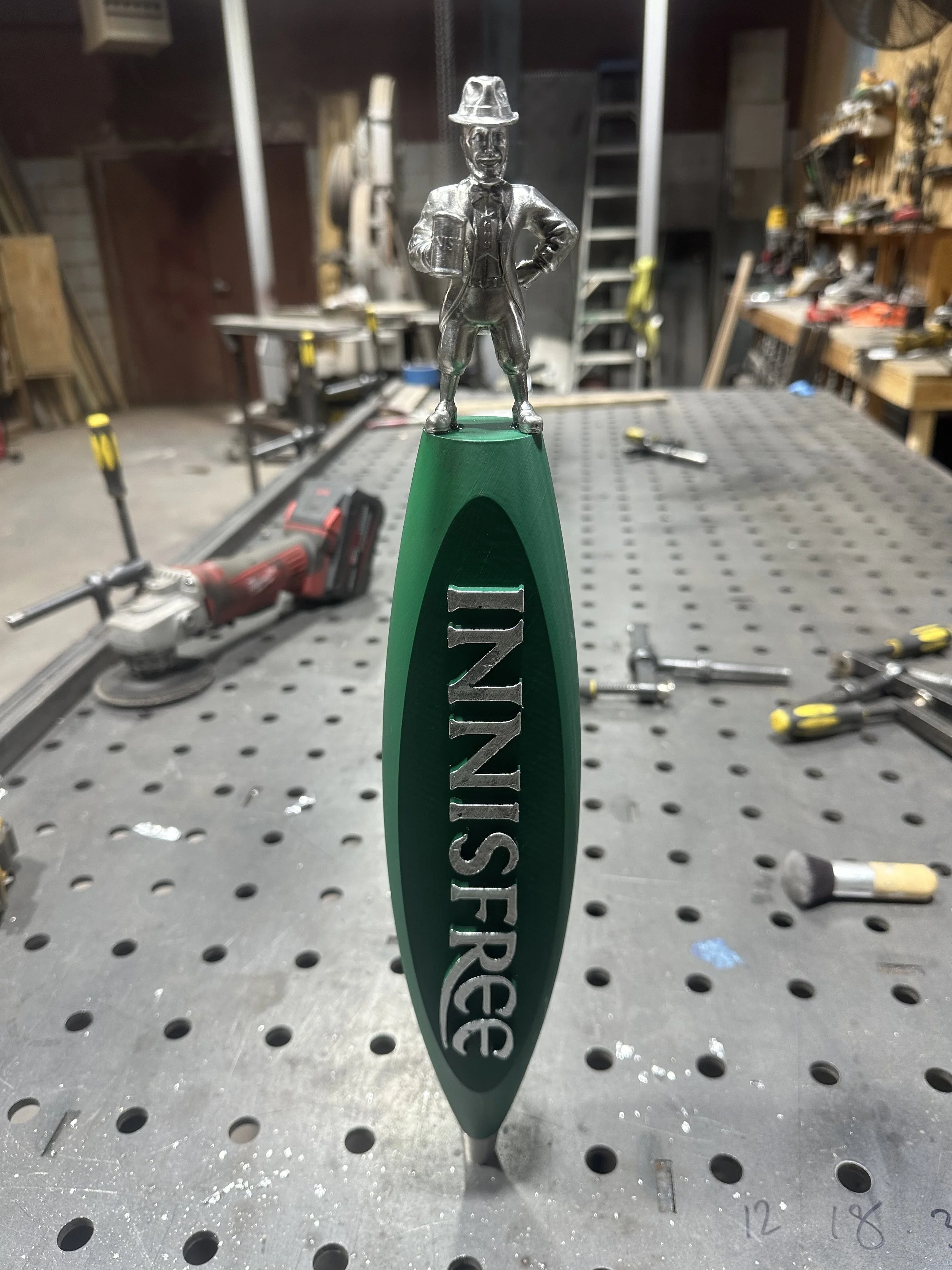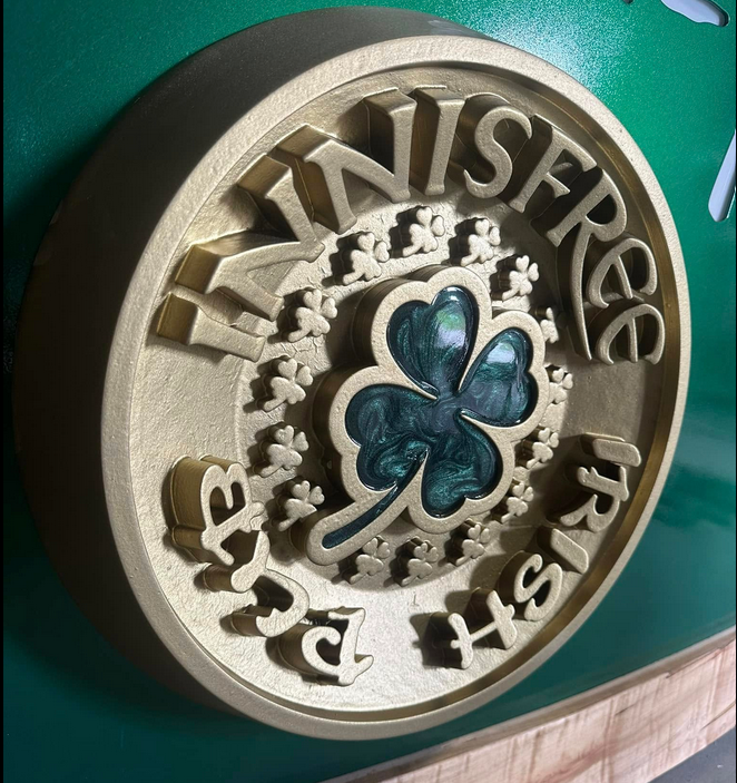 The Leprechaun sculpture was digitally modeled, 3D printed, and cast in resin before being finished in a brass-toned coating, transforming the brand’s iconic figure into a dimensional statement piece.
